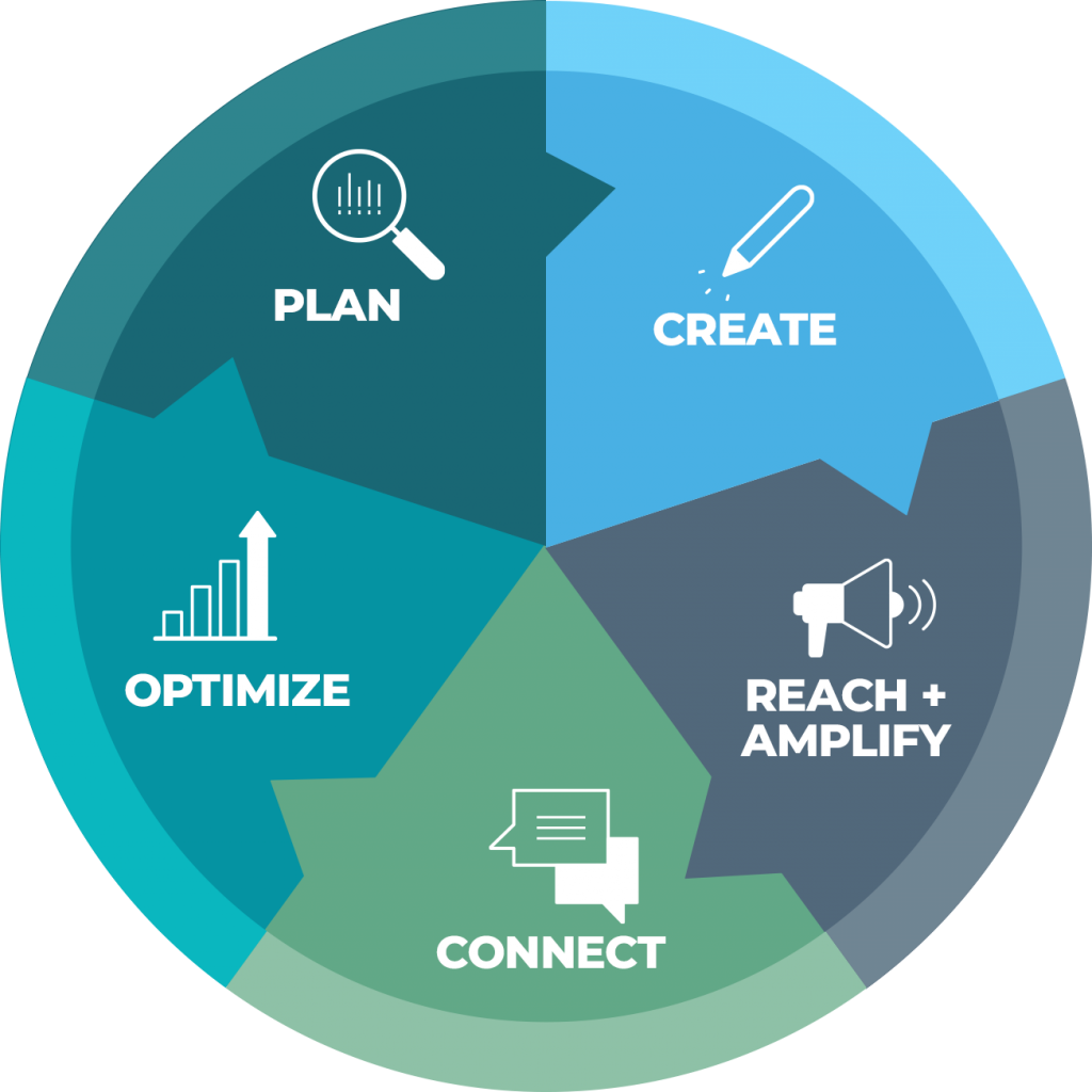 It is not a linear process. It’s a continuous system where planning, creative, distribution, engagement, and optimization all feed one another.